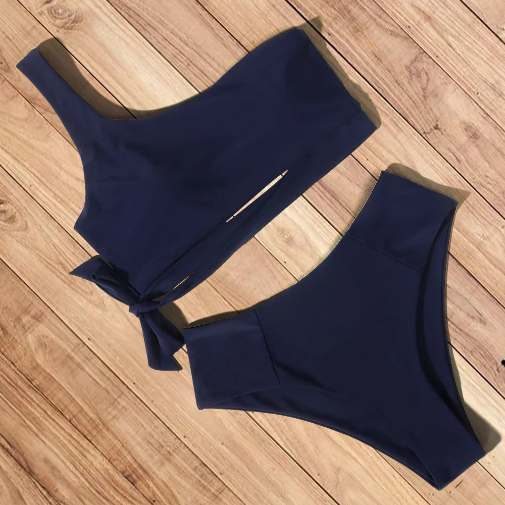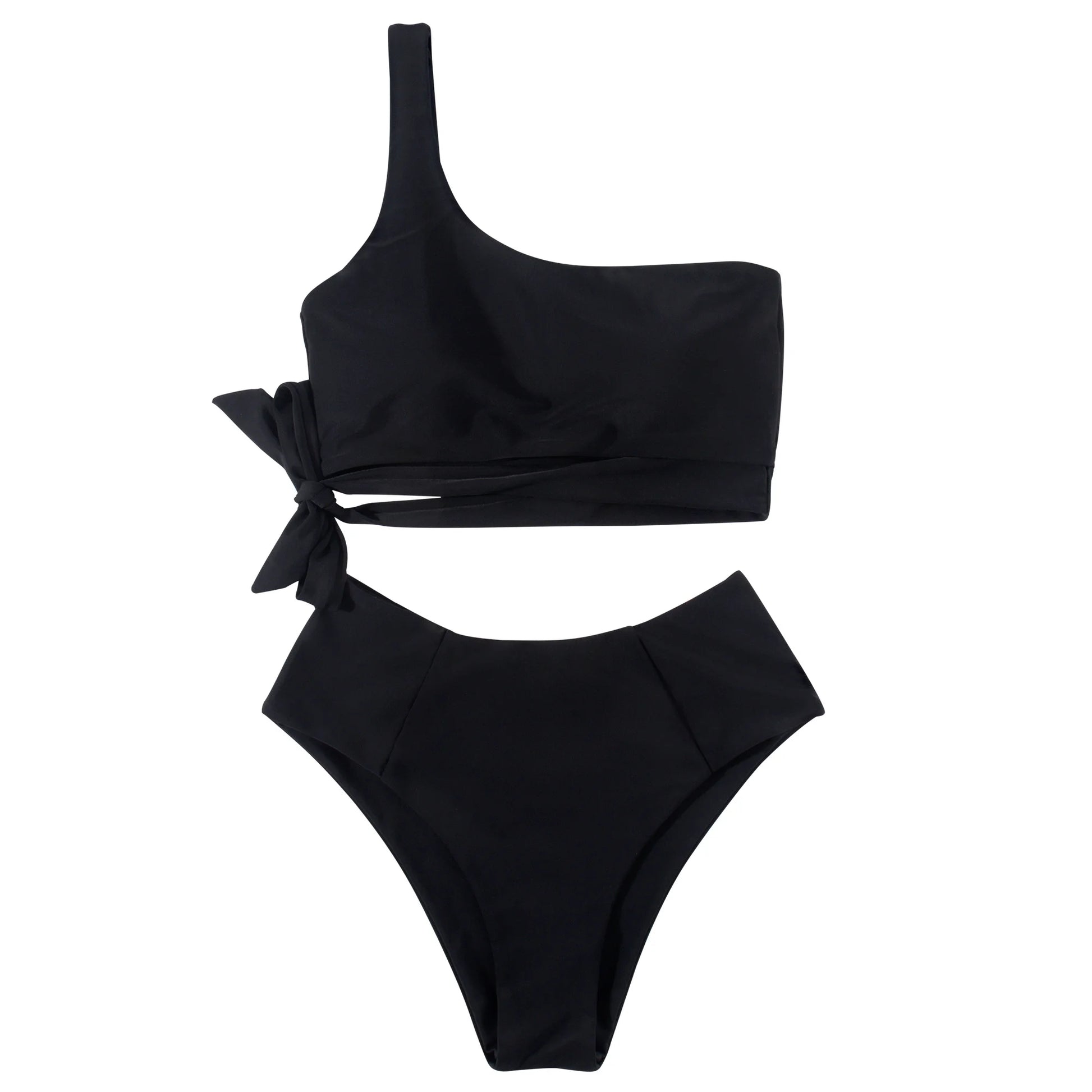 This one shoulder bikini top detailed with bow-knot and asymetrical neckline.